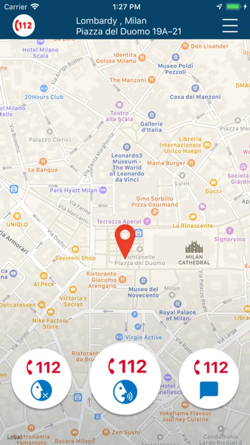 - switching to the proper emergency number when travelling abroad (e.g. in the U.S.A. the app will dial 911, instead of 112);