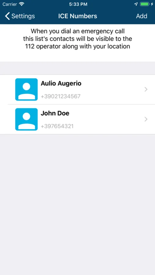 - store your personal data, including ICE (in case of emergency) numbers, that can be called for you by the 112 PSAP operator if necessary;