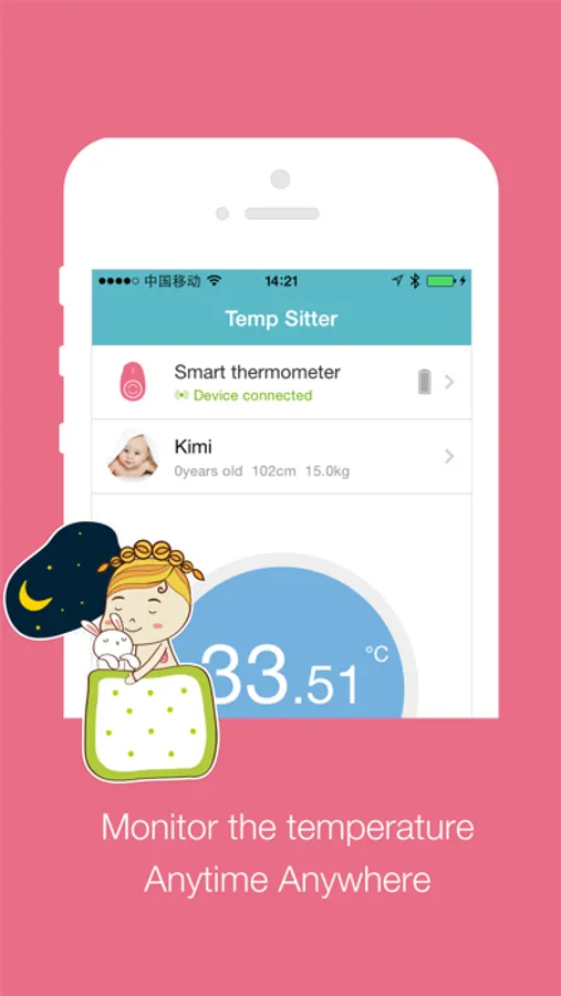 Temp Sitter is a body temperature measuring and monitoring system, which mainly geared to children. By collecting data from smart thermometer through blue tooth, Temp sitter are enabled to monitor children’s body temperature continuously. Once the temperature is above the limit, Temp sitter would sounding the alarm or sending notification through short message or Email to your device. Thus, it would be far more easier for parents to know children’s temperature anytime and take in time measures.