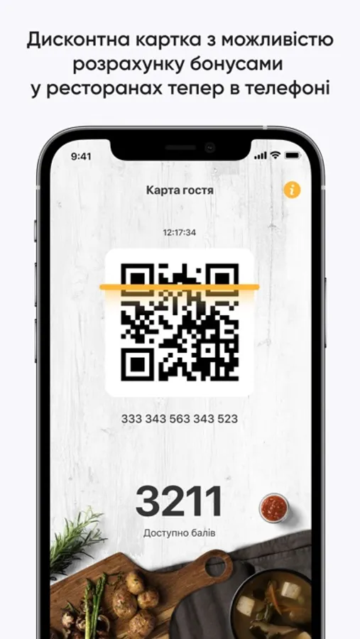 • a discount card with the ability to calculate bonuses in restaurants is now on your phone