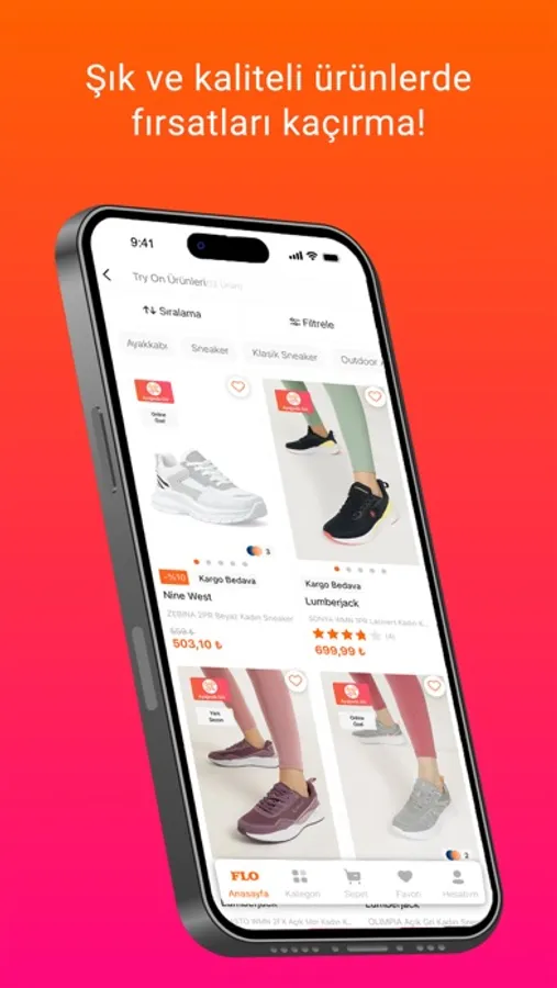 FLO mağazası,spor ayakkabı erkek modelleri ve kadın spor ayakkabı çeşitlerinde yüzlerce markanın binlerce ürününü sizlere sunuyor! Adidas,Puma,Nike kadın spor ayakkabı modelleri ve daha fazlası için uygulamayı hemen indirebilirsiniz! Koşu ayakkabısı,kız çocuk spor ayakkabı,halısaha ayakkabısı ve aradığınız tüm kategoriler burada!
