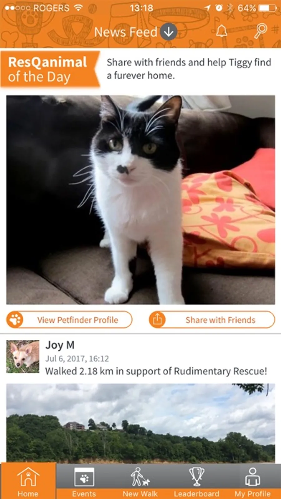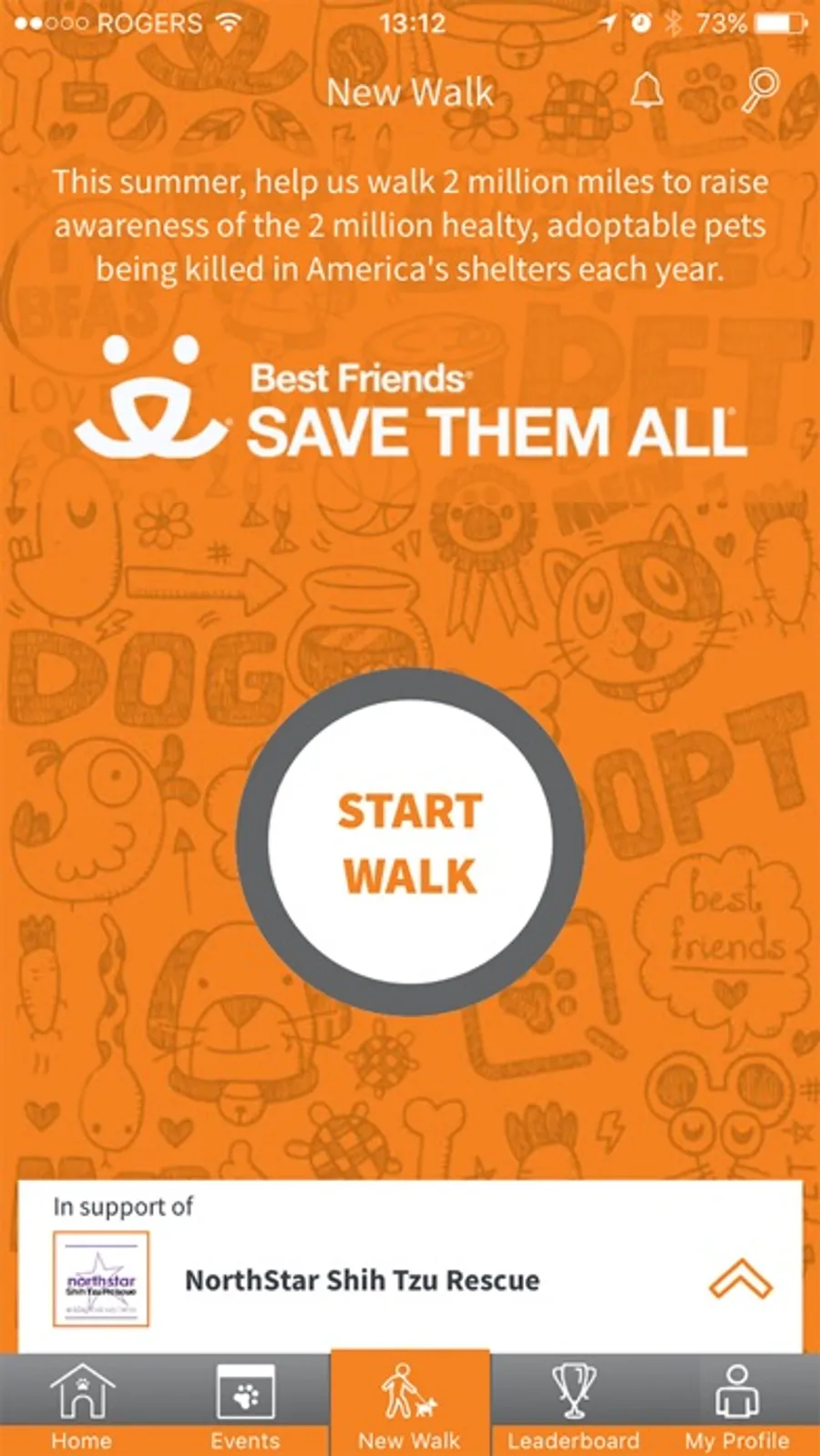 Simply pick your favorite animal welfare partner from the list, start the app, and go for a walk, run or participate in any other outdoor activity that can be measured by GPS and involves a speed of less than 14 mph. At the end of every activity, share about your adventure and pet to help inspire more to adopt and save them all.