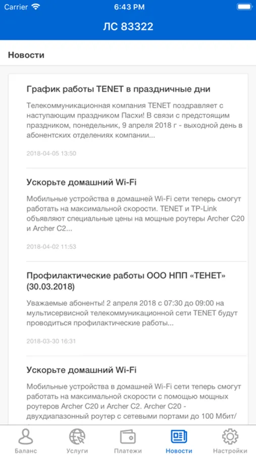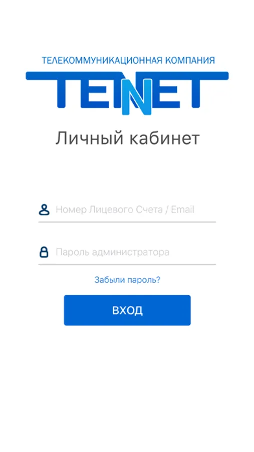 Авторизация в приложении my TENET возможна только по номеру Лицевого Счета и паролю администратора. Эти данные указаны на регистрационной карточке абонента (форма № 2) из пакета документов, полученных при подключении.