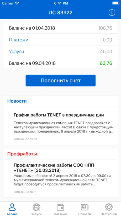 Контролируйте свои услуги онлайн. Проверяйте наличие и расход средств, пополняйте Лицевой Счет онлайн, заказывайте "Хороший день!", смотрите детальную статистику звонков.