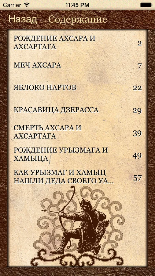 Данное приложение предоставляет вам возможность читать осетинские сказания о нартах на русском и осетинском языках.