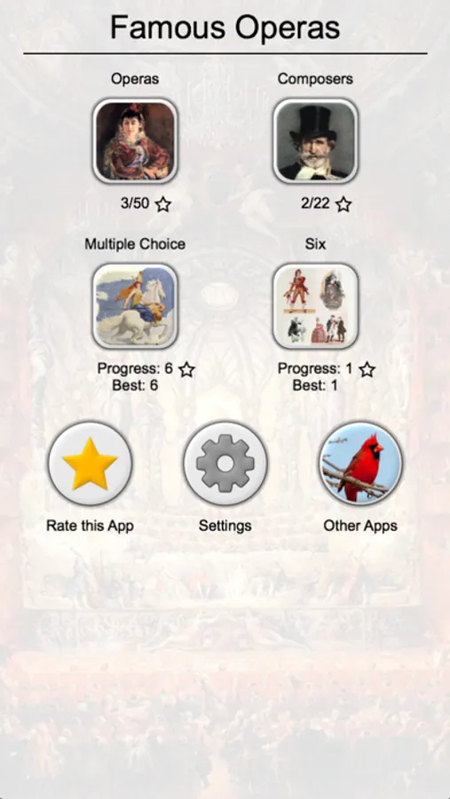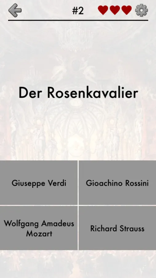 For all opera fans! Demonstrate your knowledge of the 50 most performed operas by the most important opera composers. The app has 2 game levels: