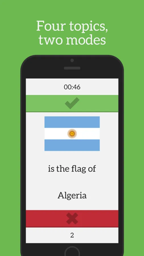Elementary Minute is an fast paced trivia game, where you are presented with statements from topics like Math, Geography or Science. Quickly swipe up or down to decide if the statement are true or false.