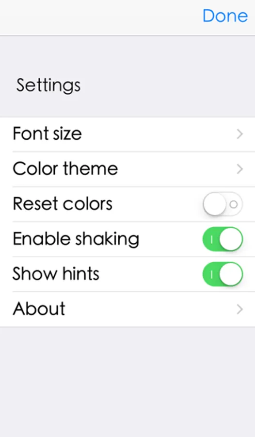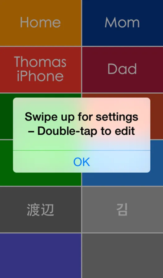 You can increase the font size up to 64 points to increase the legibility. The app supports also voice over and can read the displayed names. And if you like to change the colors, then just shake your iPhone.