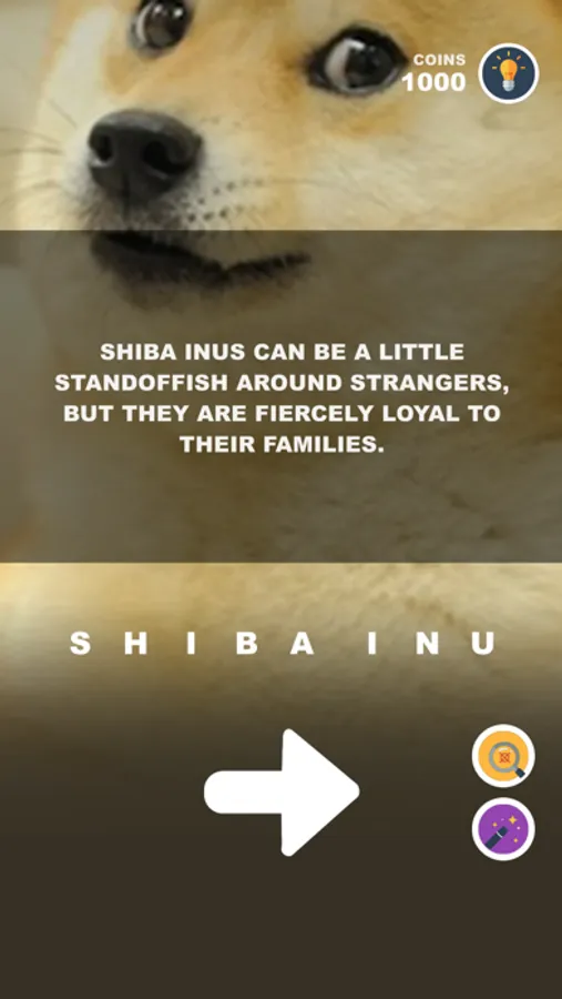 Everyone solves puzzles differently. In DOG BREED TRAINING: PET TRIVIA we offer 2 different ways for players to get back on track. Pick up some general knowledge about the answer by using “Secrets”, remove incorrect letters with “Remove Letters”, or use the “Reveal Letters” to figure out the right word! If all else fails, users can always “Ask a Friend” on Facebook.