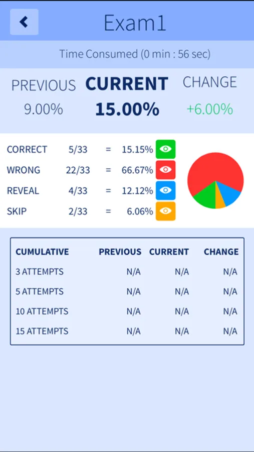 The app features 4 multiple choice quiz program. The answers can be revealed and the progress is recorded into graphs that motivates the user to perform better in next attempts. The questions and answers can be randomized so the user don't memorize the question or answer sequence.