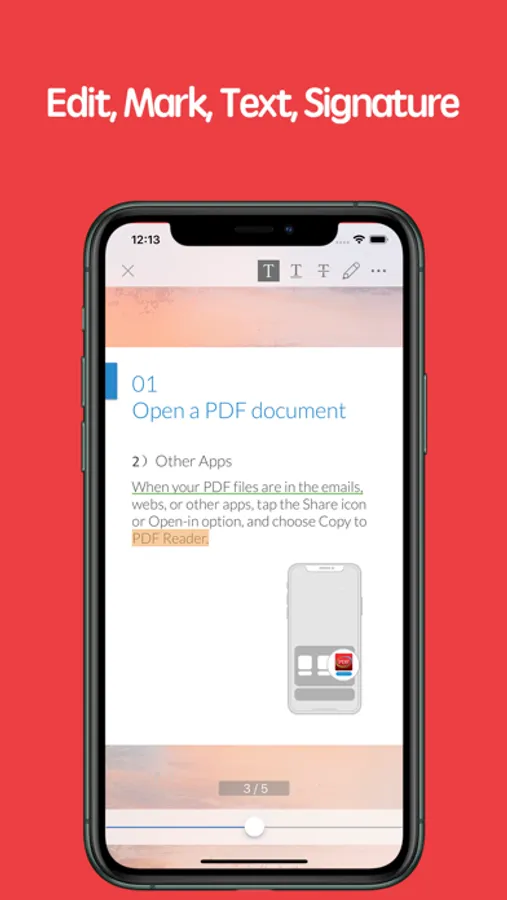Find the PDF document on emails, webs or other application, tap the Share icon or Open-in option, and choose Copy to PDF Reader, select "PDF Reader". The document will be opened in the PDF Reader .