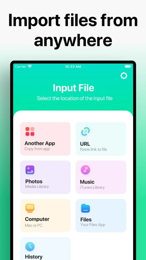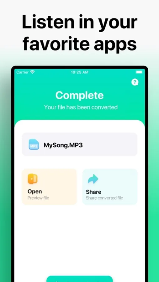 Save, Share or Listen to your converted audio files in your favorite apps immediately. You can even browse your previously converted files with our in-app file browser.