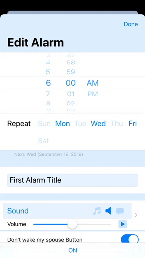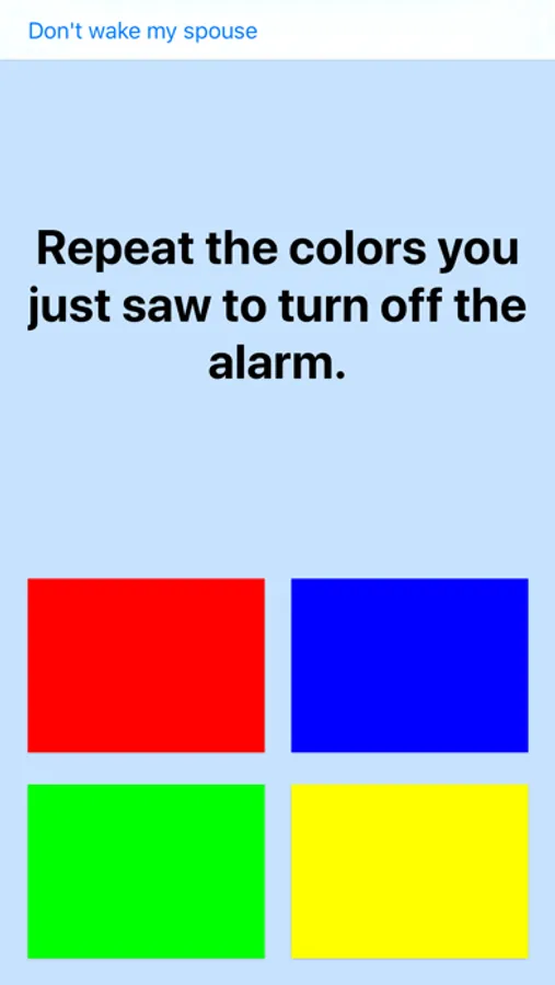 Now you can use the "Don't Wake my Spouse Button"! It's a super short time snooze (optional). Your spouse will thank you later.