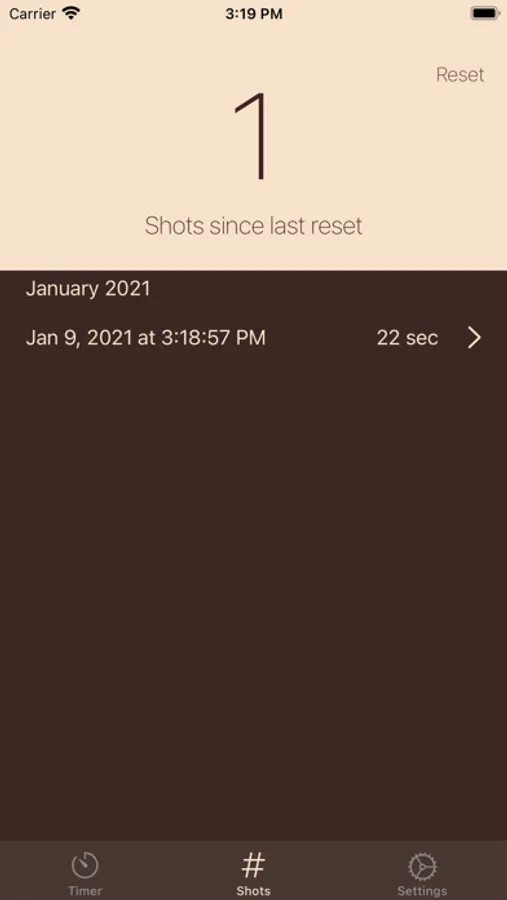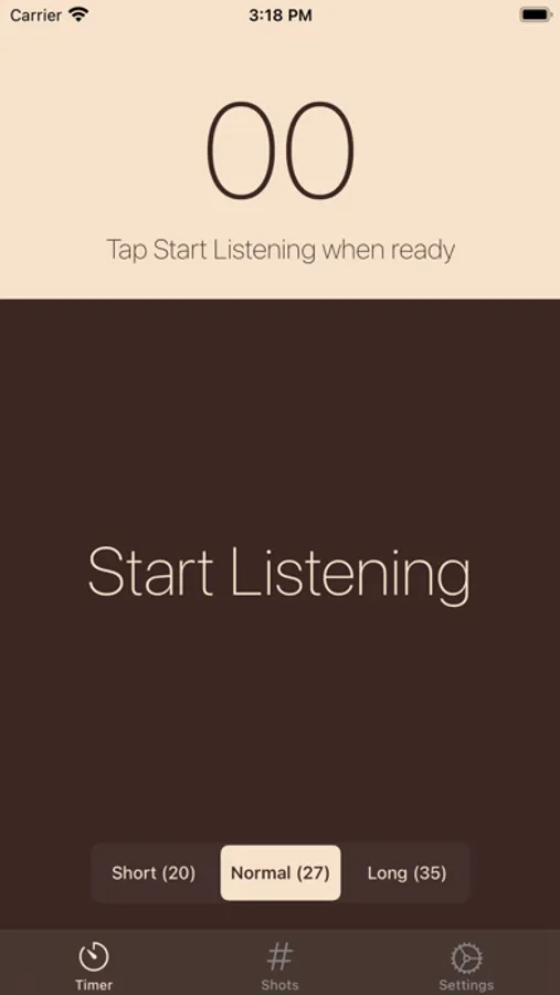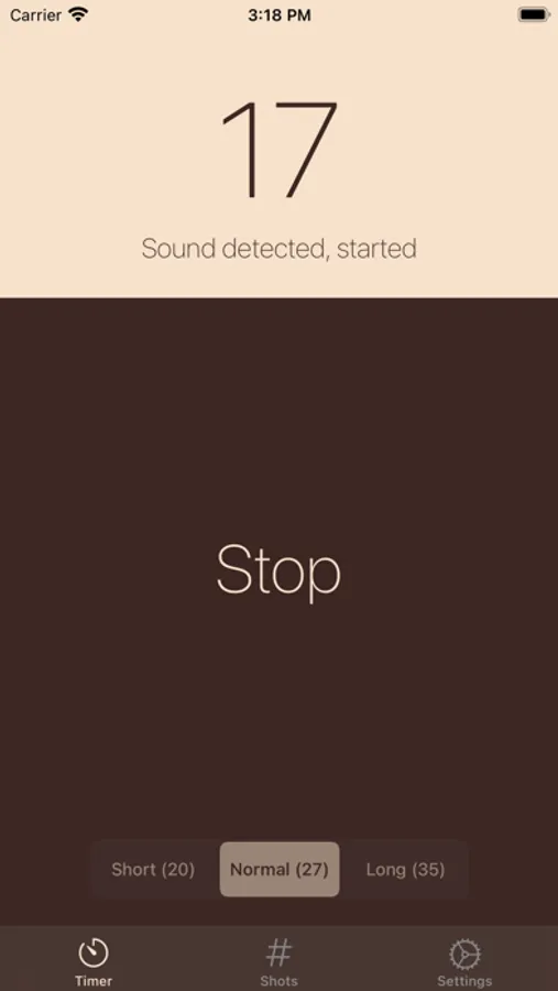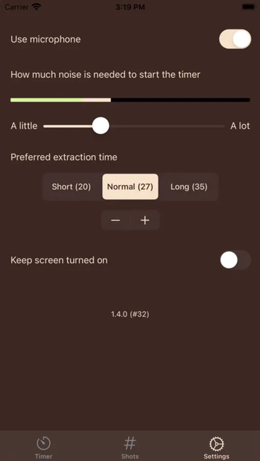 When you're ready to start brewing your shot, you just start the app and place your phone near your espresso machine. The app will detect sound from your microphone and the timer will start counting.