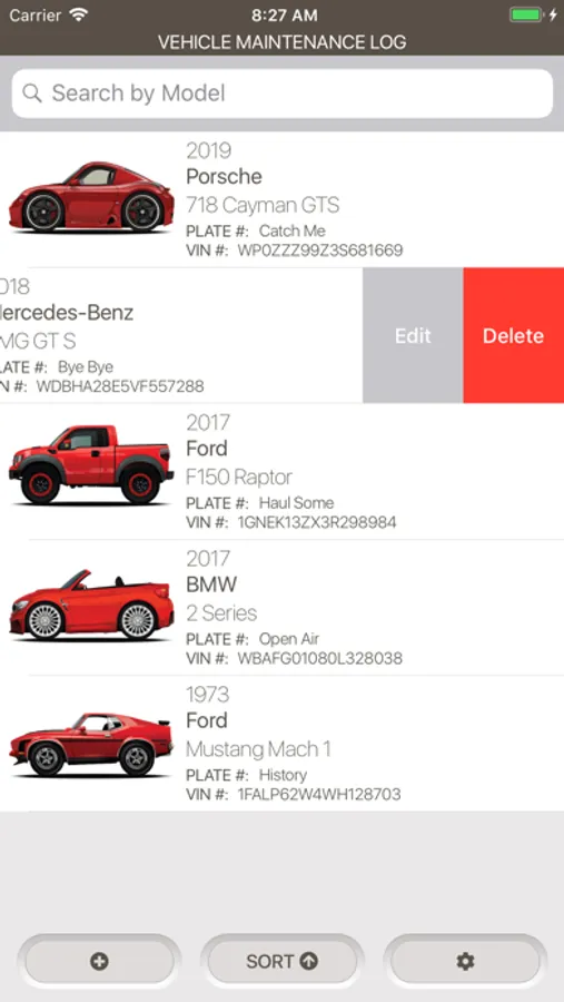 • Current vehicle brands includes; Acura, Alfa Romeo, AMC, Aston Martin, Audi, BMW, Bugatti, Buick, Cadillac, Caterham, Chevrolet, Citroen, Chrysler, Daewoo, Datsun, Daihatsu, Dodge, Eagle, Ferrari, Fiat, Ford, Geo, GMC, Holden, Honda, Hummer, Hyundai, Infiniti, Isuzu, Jaguar, Jeep, Kia, Koenigsegg, Lancia, Lamborghini, Land Rover, Lexus, Lincoln, Lotus, Maserati, Mazda, McLaren, Mercedes-Benz, Mercury, MG, Mini, Mitsubishi, Nissan, Oldsmobile, Opel, Panoz, Peugeot, Plymouth, Pontiac, Porsche, Proton, Renault, Saab, Saturn, Scion, Seat, Skoda, Smart, Subaru, Suzuki, Sylva, Tesla, Toyota, Triumph, Vauxhall, Volkswagen, Volvo, and an Unlisted Brand to cover any unique cases.