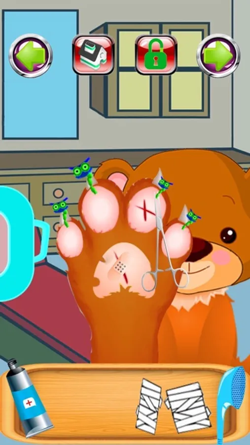 Little Pet Vet Foot Doctor spa salon is made for giving the first aid treatment to cute pets. And you are the who will give them the treatment by curing their wound. You can do this by following our helping instructions.