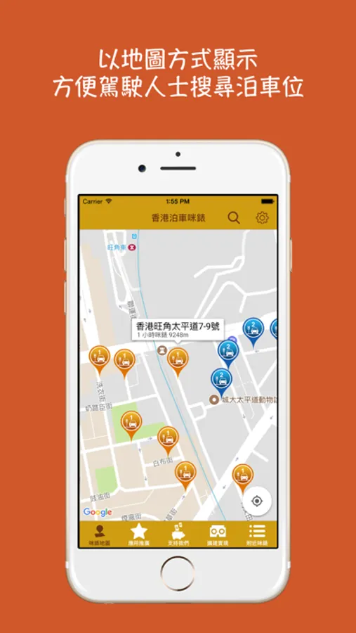 Hong Kong Meters Parking collects all the street parking meters in Hong Kong. With our application, you can find the location of the nearest meter!