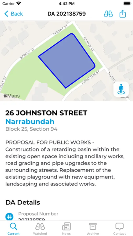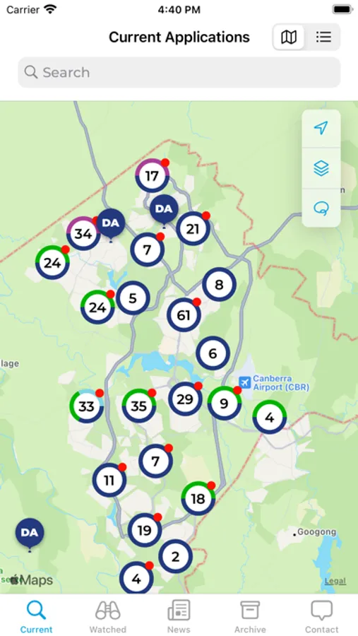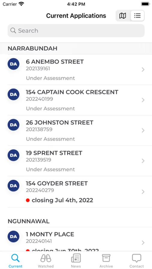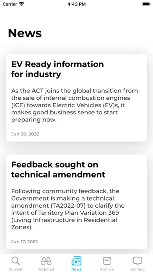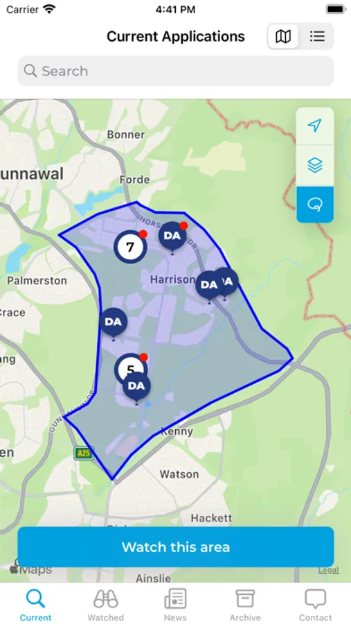 The App enables users to view and link to current development application notifications (and other notifications) in the Australian Capital Territory. In addition, users can receive a push (alert) when a notification is publically available in their specified area/s. Once selected, users can then view the notification via the Environment and Sustainable Development Directorates website and respond through the existing feedback channels.