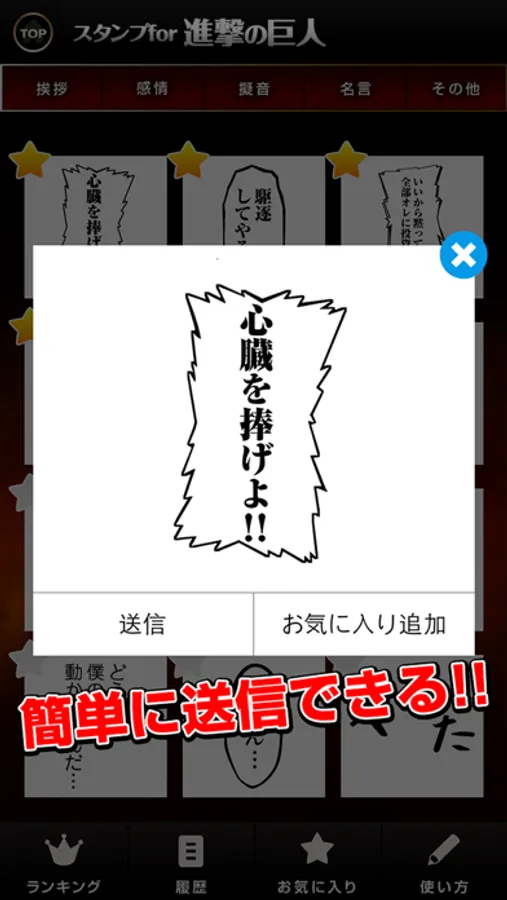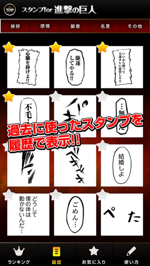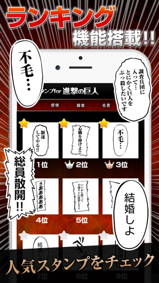 "Stamp For 進撃の巨人" is the first appearance to the iPhone app!