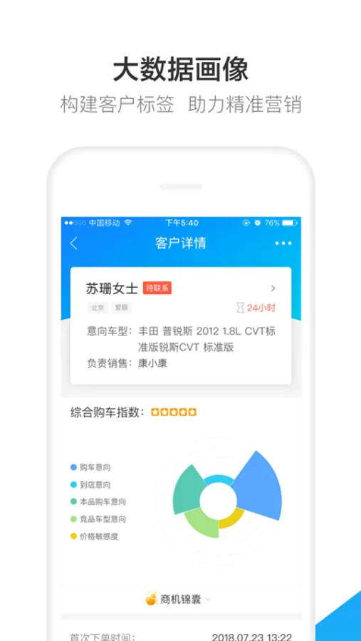 2、构建客户标签,大数据画像及商机锦囊助力精准营销及转化成交;