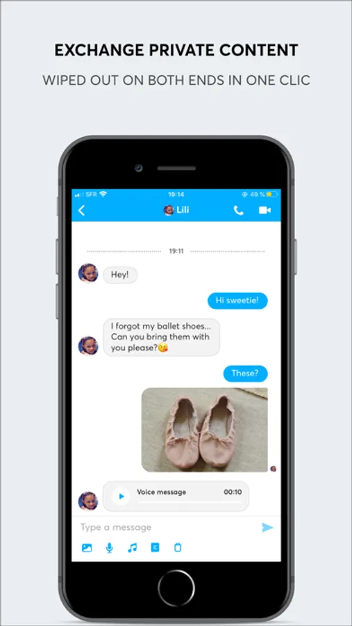 . PRIVATE CONVERSATIONS: all conversations happen in peer-to-peer with no relay server storing contents in-between devices. Data exchanged always stay within devices. Messages and voice/video calls are end-to-end encrypted . You clear all messages of a conversation on both ends simultaneously in one tap.