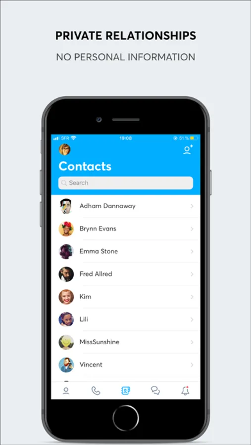 . PERSONALIZED CONTACTS: you can choose what you disclose about yourself to each of your twinme contact individually: your name, your image, which you can change at any time. You control how each of your contacts can reach you (or not). Since your contact information is personal to each of your contacts, it cannot be transferred to nor used by anyone else. You are in full control, whether you interact with a close friend or a complete stranger.