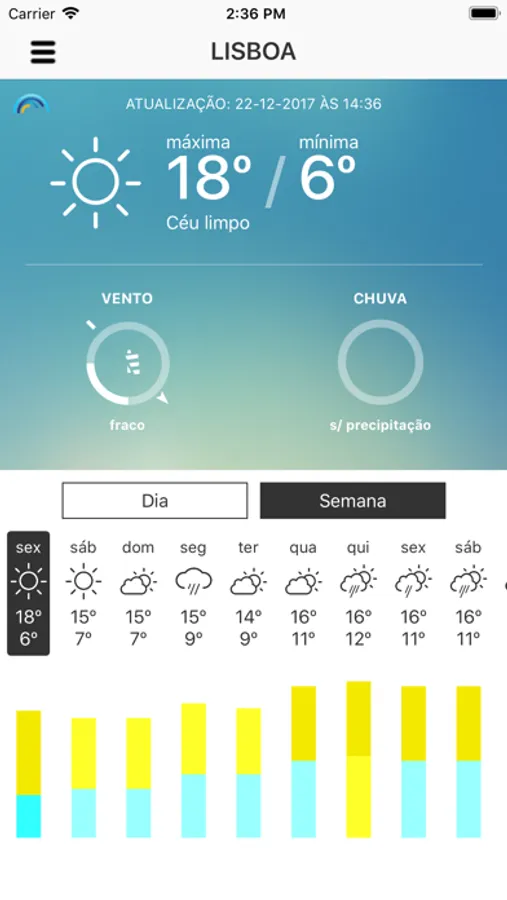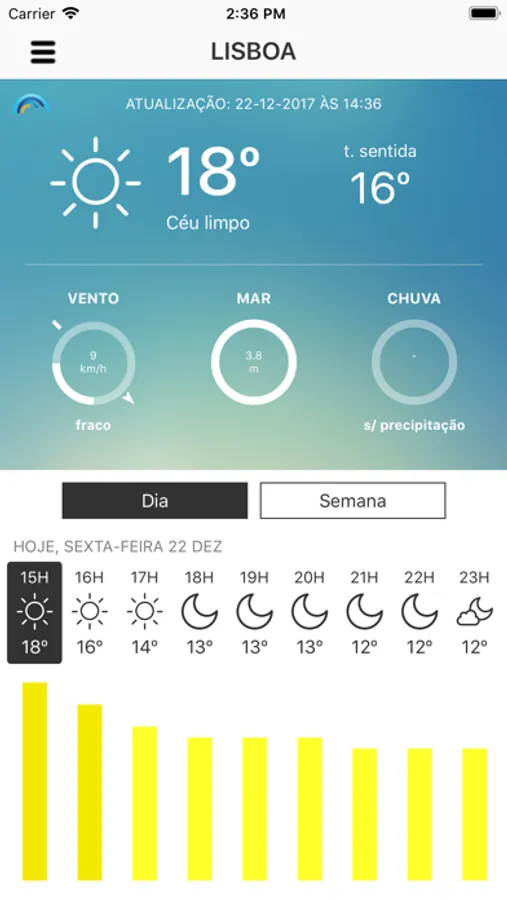 - informação detalhada sobre os avisos meteorológicos, por local;