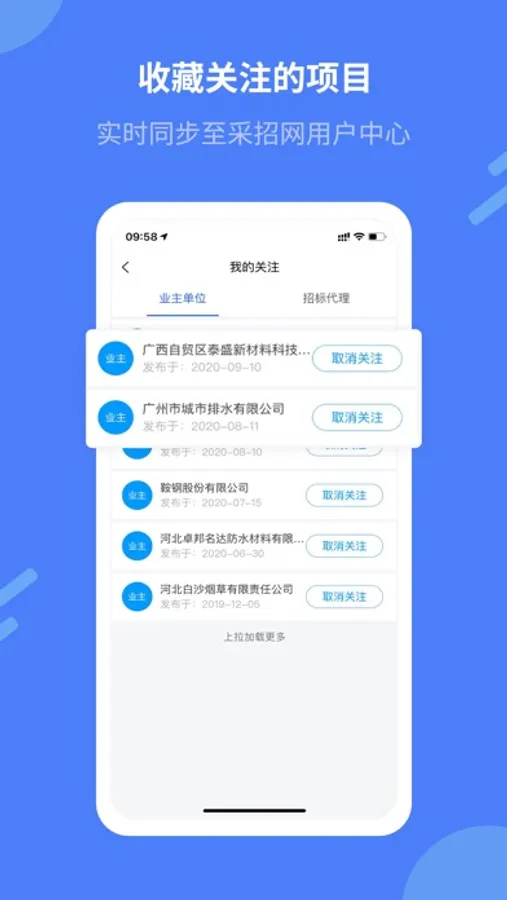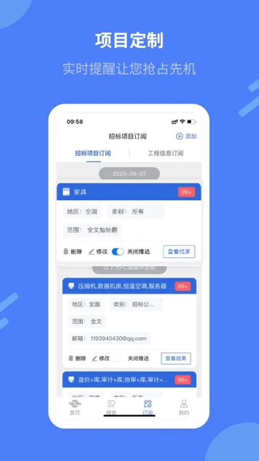 每天根据您定制的招标项目关键词,在手机上直接查看,随手收藏关注