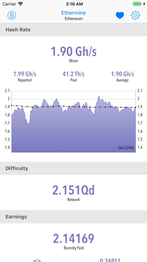 5. To receive low hash rate notifications, you must add the summary stats widget to your widget screen, and select the heart/favorites button in the main app on those coins you want to receive notifications. You can change the notification threshold for each coin independently in Settings.