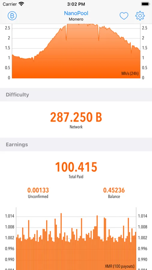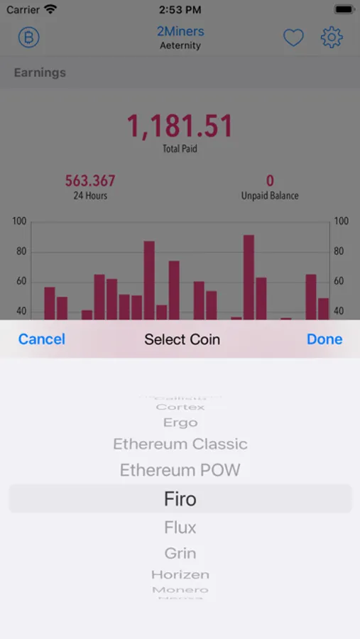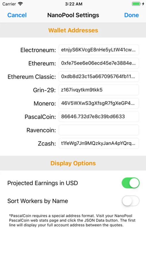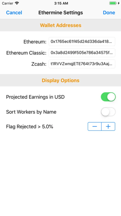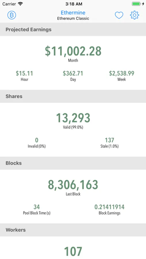 • Option to show projected earnings in coins or USD for month, week, day, and hour