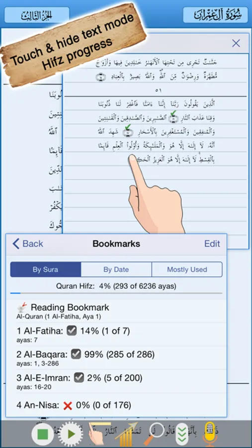 ◉ رصد التقدم المحرز الخاص بك عن طريق تدق كل آية يحفظون