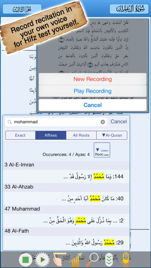 هذا التطبيق يساعد على حفظ القرآن الكريم مع الميزات التالية: