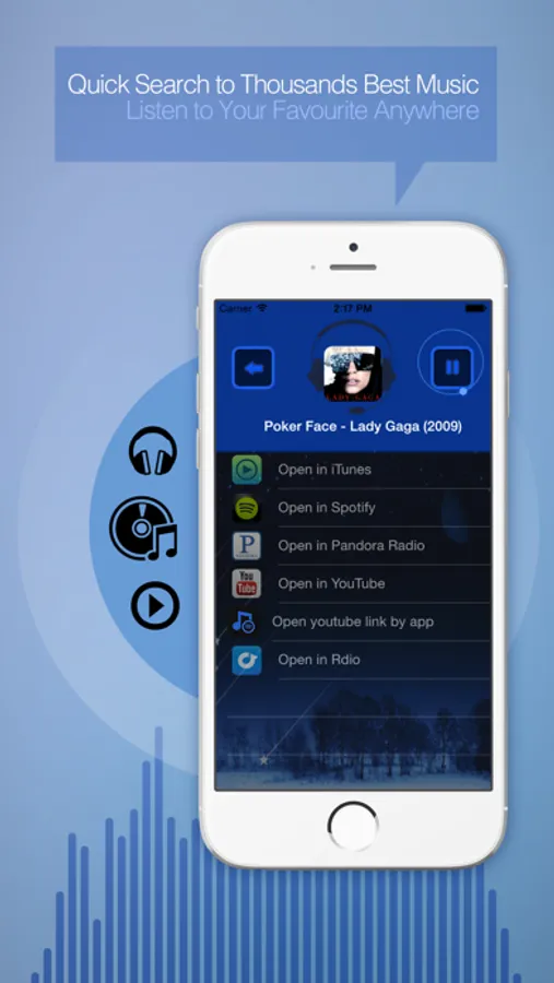 - Support not only iTunes & Spotify, but also YouTube, iHeart Radio, Rdio and Pandora