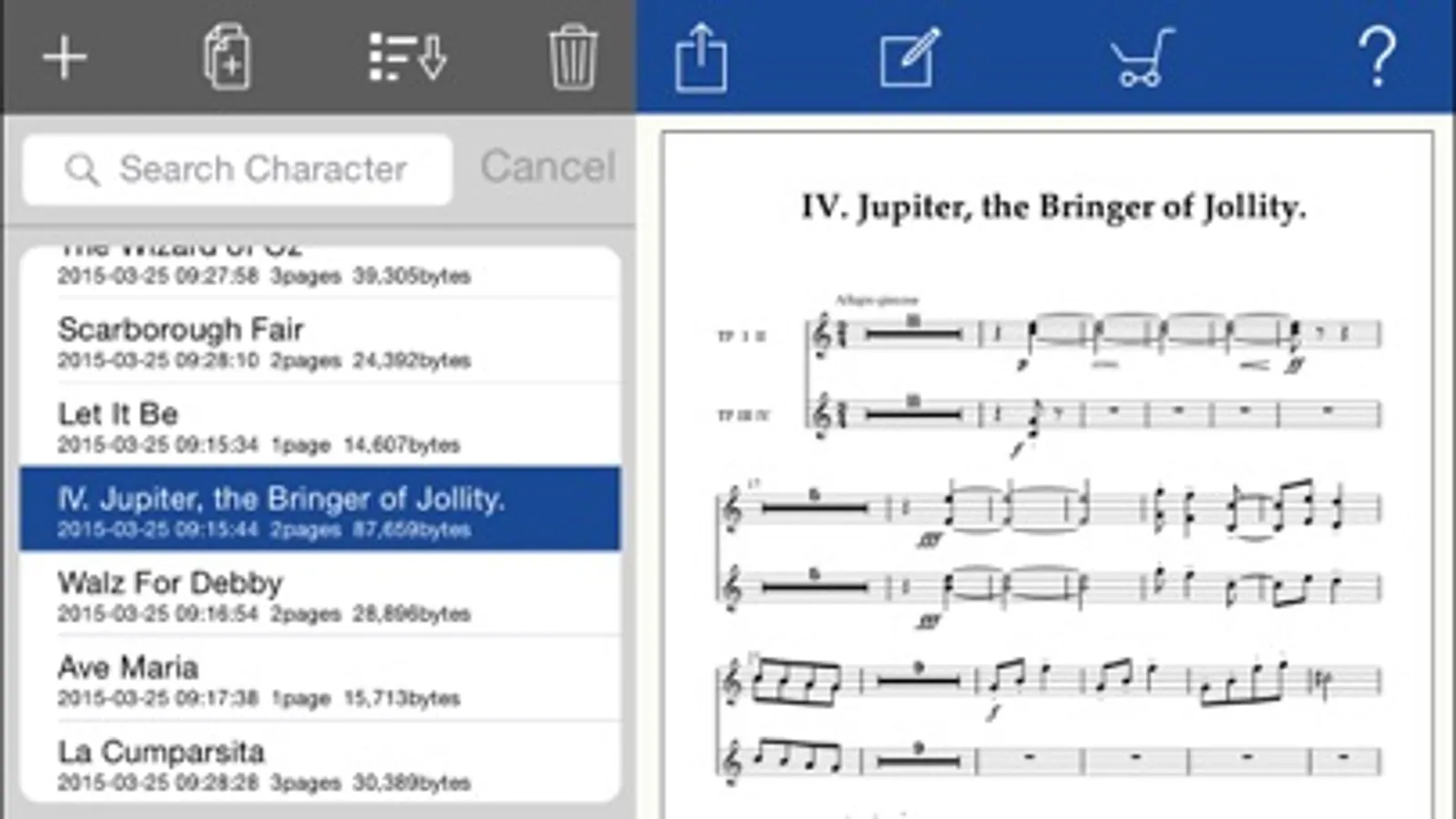 - Output scores using Air Print, or save to Dropbox in PDF, SMF, MusicXML, and ScoreMaker formats.