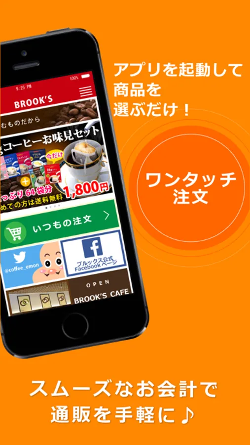 コーヒー通販のパイオニア、BROOK’Sの公式ショッピングアプリがついに登場!。コーヒーはもちろん、日本茶、紅茶、健康茶、コーヒー等を楽しむグッズ、ローションやオーラルケアまで取りそろえた豊富な商品を、いつでもどこでも気軽にショッピングできます。