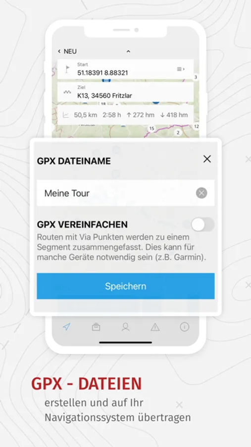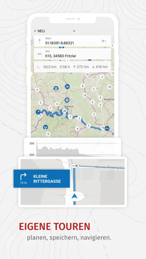 Die Navigation des Radroutenplaners Hessen leitet Sie schließlich unterwegs über die geplante Route. Bei Bedarf lassen sich die Routen aber auch durch Download des zugehörigen GPX-Tracks auch auf Ihr eigenes Navigationssystem übertragen.
