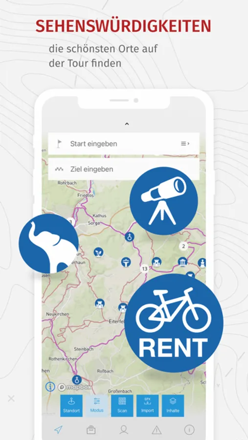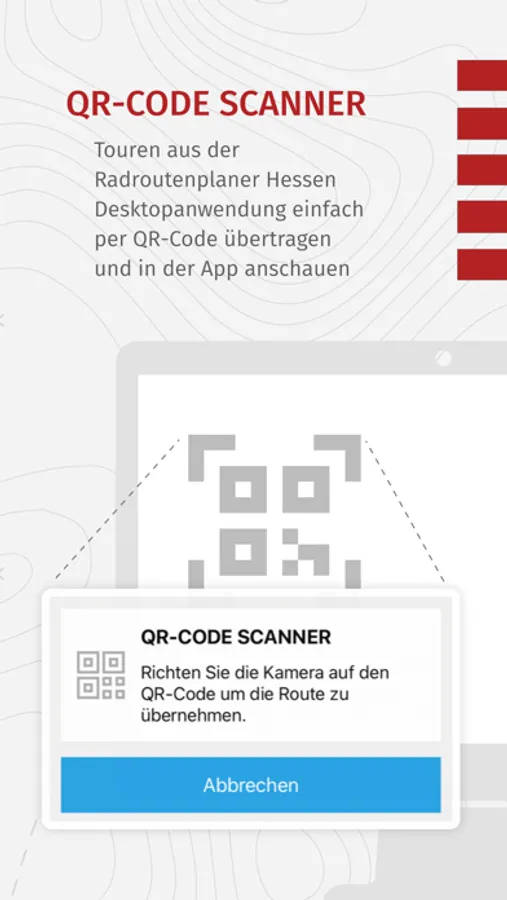 Alle, die Ihre Tour lieber zu Hause am PC oder Laptop planen, können die geplante Route einfach auf die App übertragen. Dazu einfach mit der Handy-Kamera den in der Webanwendung angezeigten QR-Code fotografieren. Die geplante Route wird dann in der App geöffnet und kann dort bearbeitet oder zur Navigation genutzt werden.