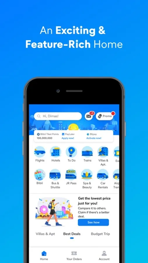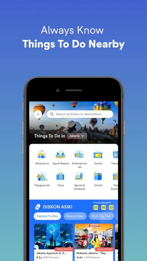 Nowadays, staying in a luxury hotel and flying with your favorite airlines are also getting a lot cheaper. Are you planning to go somewhere fun? With tiket.com app in your pocket, you can embark on an exciting journey with your loved ones! Open tiket.com app and book cheap flight tickets, hotels, car rentals, train tickets, Airport Transfers, and To Dos for your next adventure!