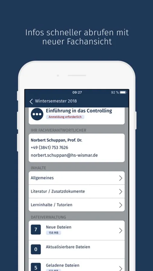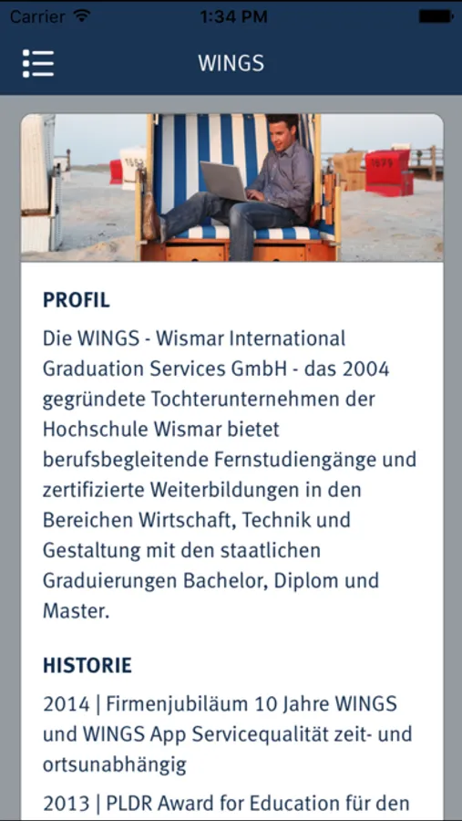 Mit der WINGS App haben Sie als Fernstudent der Hochschule Wismar stets zentralen Zugriff auf Ihre Termine und Veranstaltungen, Noten, Ihr Curriculum, die Ansprechpartner sowie News rund um das Thema Fernstudium.