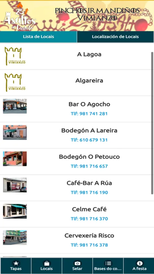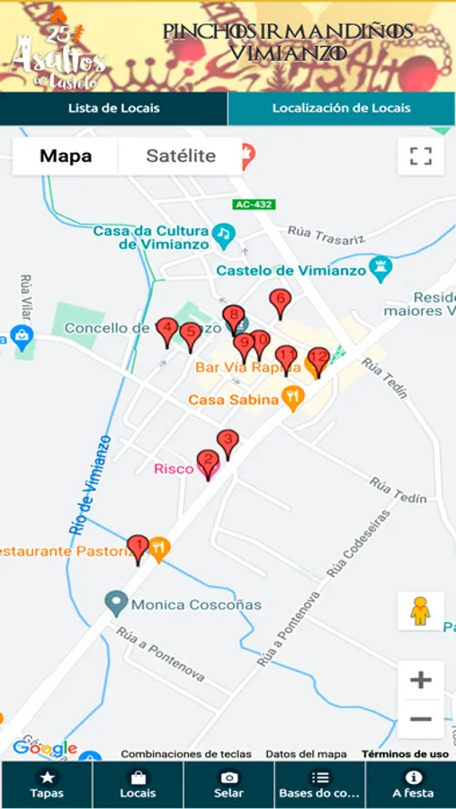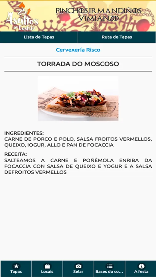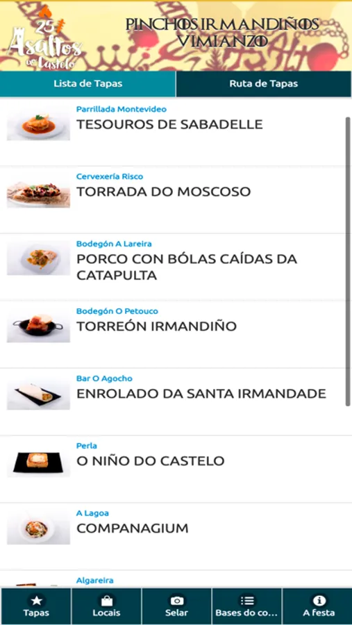 El "Asalto ao castelo" de Vimianzo es una fiesta popular que se celebra el primer sábado de Julio desde 1996. Con esta aplicación podrás consultar los pinchos que ofrecen los diferentes locales adscritos a la ruta de tapas que se celebra durante esta festividad. Además, podrás valorar los diferentes pinchos, sellar tu paso por los locales y participar en los diferentes sorteos.