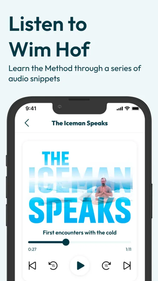 • Do the 30-Day Audio Challenge: follow Wim on a narrative journey as you gradually extend your Wim Hof Method practice