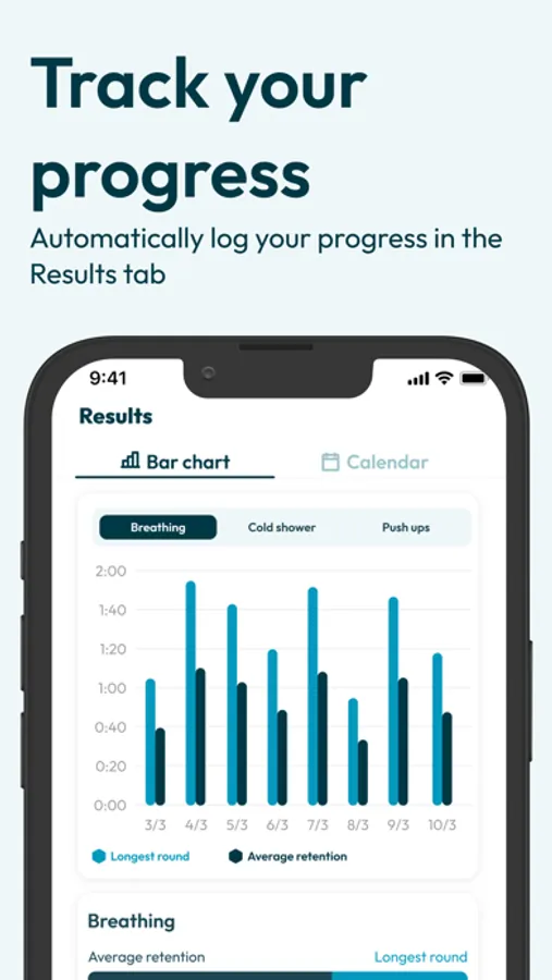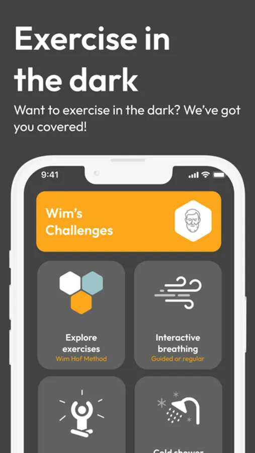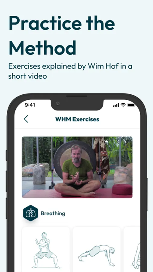 Immerse yourself in the breathwork practices with the help of Wim Hof's voice guiding you through the fully customizable interactive breathing bubble. Engage in strength and flexibility-enhancing exercises as explained by Wim himself, and track your swift improvement in breathing, retention, and cold exposure over time.