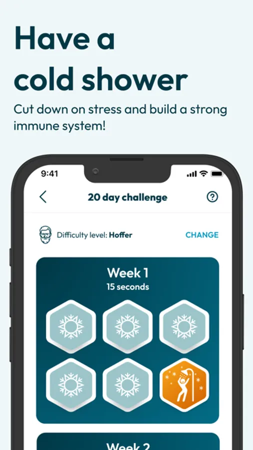 • Build up your cold tolerance with the customizable 20-Day Cold Shower Challenge