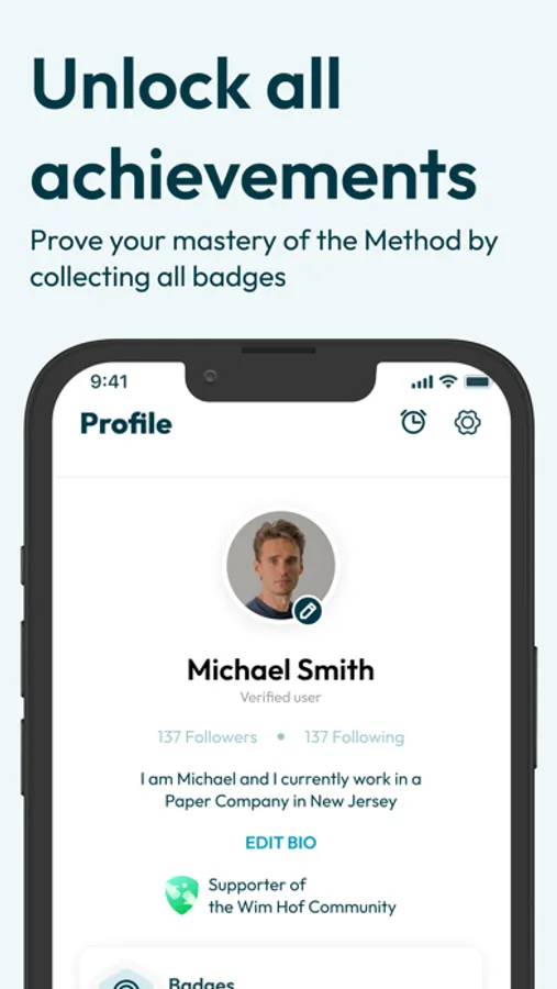 For those eager to truly immerse themselves in the Wim Hof Method, the app offers an additional feature: Wim's challenges. Experience the Method as practiced by the Iceman himself. These challenges comprise a dynamic, well-rounded daily routine, including morning, afternoon, and evening exercises, coupled with wellness recommendations. As you follow these guidelines, track your progress with an intuitive daily and monthly progress bar, reinforcing your commitment and helping you to develop a more toned physique. Every step of your journey is celebrated with achievement badges, serving as motivational milestones on your path to increased health and well-being.
