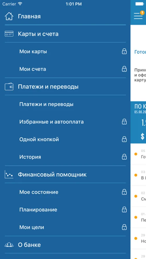 • Удобный контроль всех своих счетов в банке - кредитные, вкладные, текущие счета;