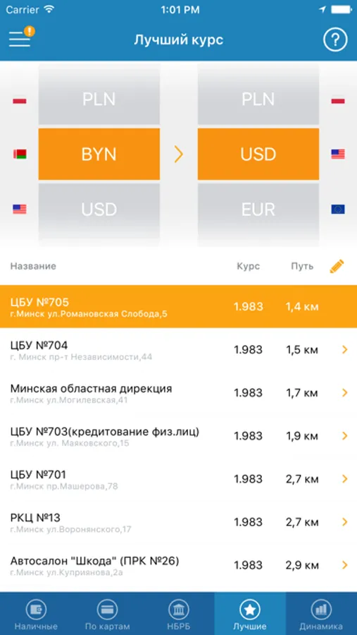 • Актуальная информация по курсам валют (для наличных, по картам, курсы НБРБ);