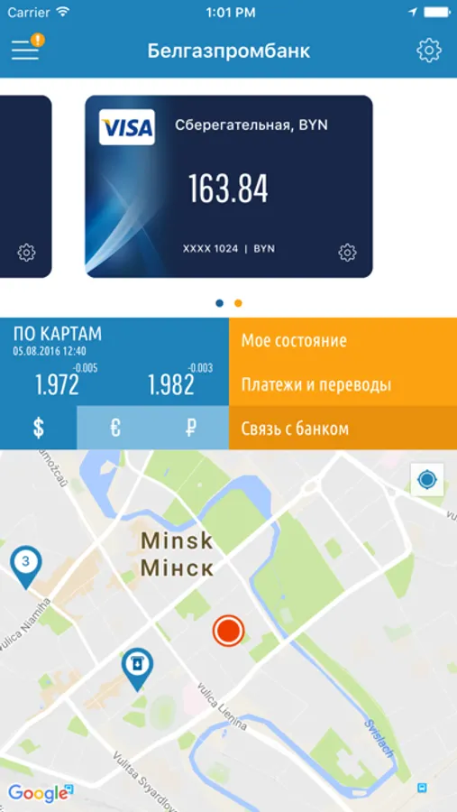 • Вывод на карте ближайших отделений и банкоматов ОАО «Белгазпромбанк», а также партнеров. Удобный поиск по пунктам обслуживания;