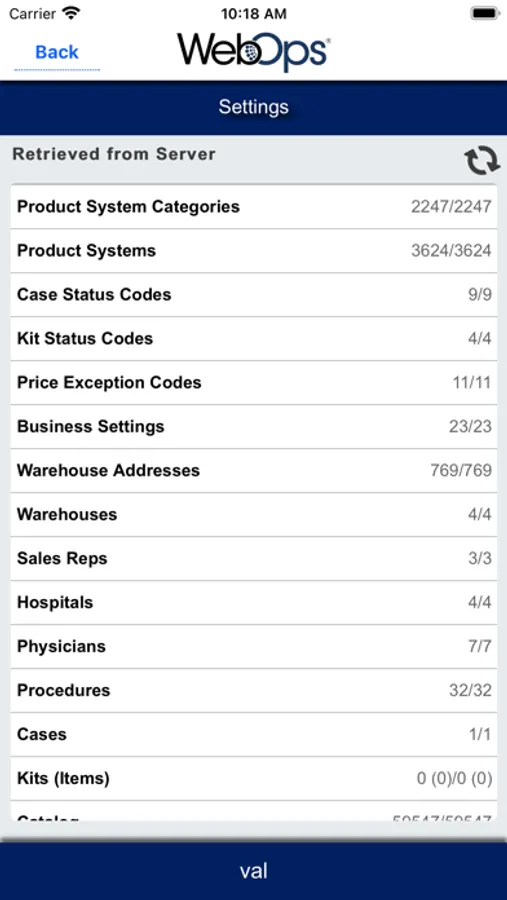 This mobile application links medical device sales reps with the server based WebOps Logistics application for the management of surgical case scheduling, logistics (including kit management), replenishment, billing and supporting inventory control activities.