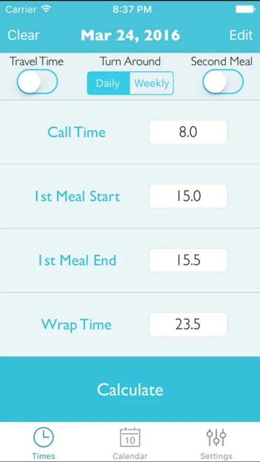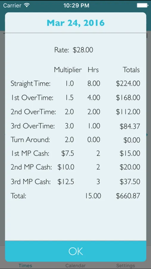 With this app you can customize Overtime, Turn Around and Meal Penalty structures to be exactly like your contract.