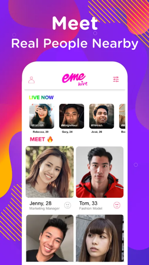 Formerly known as EastMeetEast, EME Hive is a unique mixed space for dating, live chat, and community building. Go live to video chat, meet new people around you, discover your Hive, and bond together.